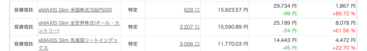 一番購入量が多い全世界株式(通称:オルカン)も+61.56%になっていました。