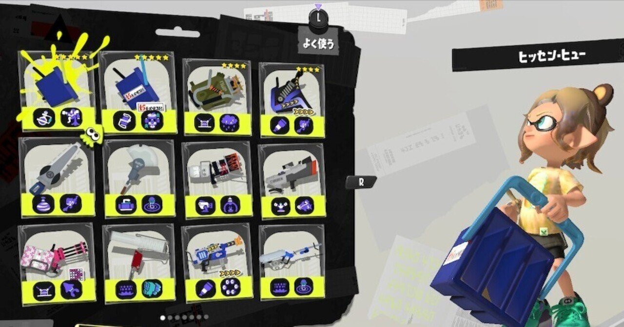 そんな中インターネットで「スプラトゥーン スティック勢 おすすめ」で検索したところ下の方のnoteに辿り着きました。記事内でヒッセン・ヒューがスティック勢おすすめ武器として紹介されていました。
