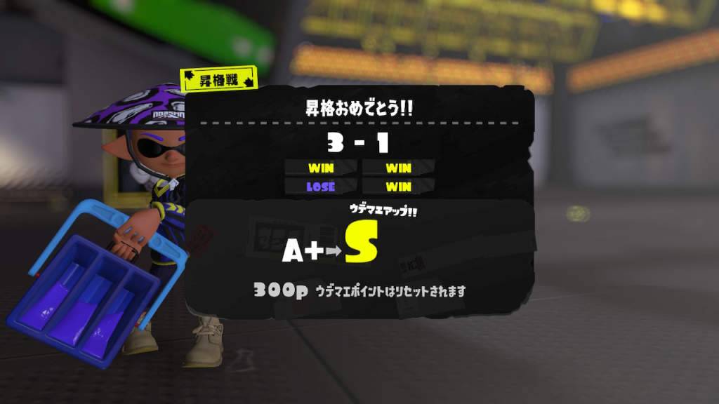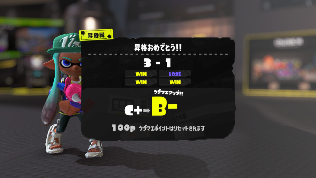 スシコラを使っていたころの最高のウデマエはB−でそれ以上は難しいと感じていました。