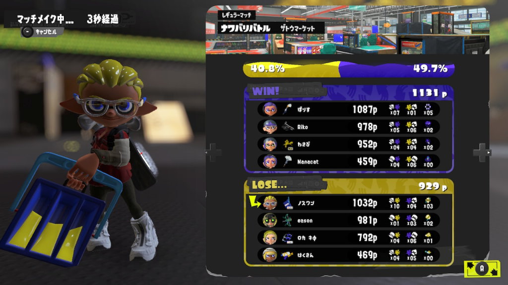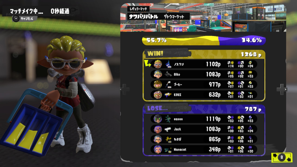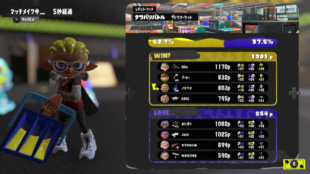 ザトウマーケットは立体的な戦いがしやすいので、間違いなく得意マップ。
