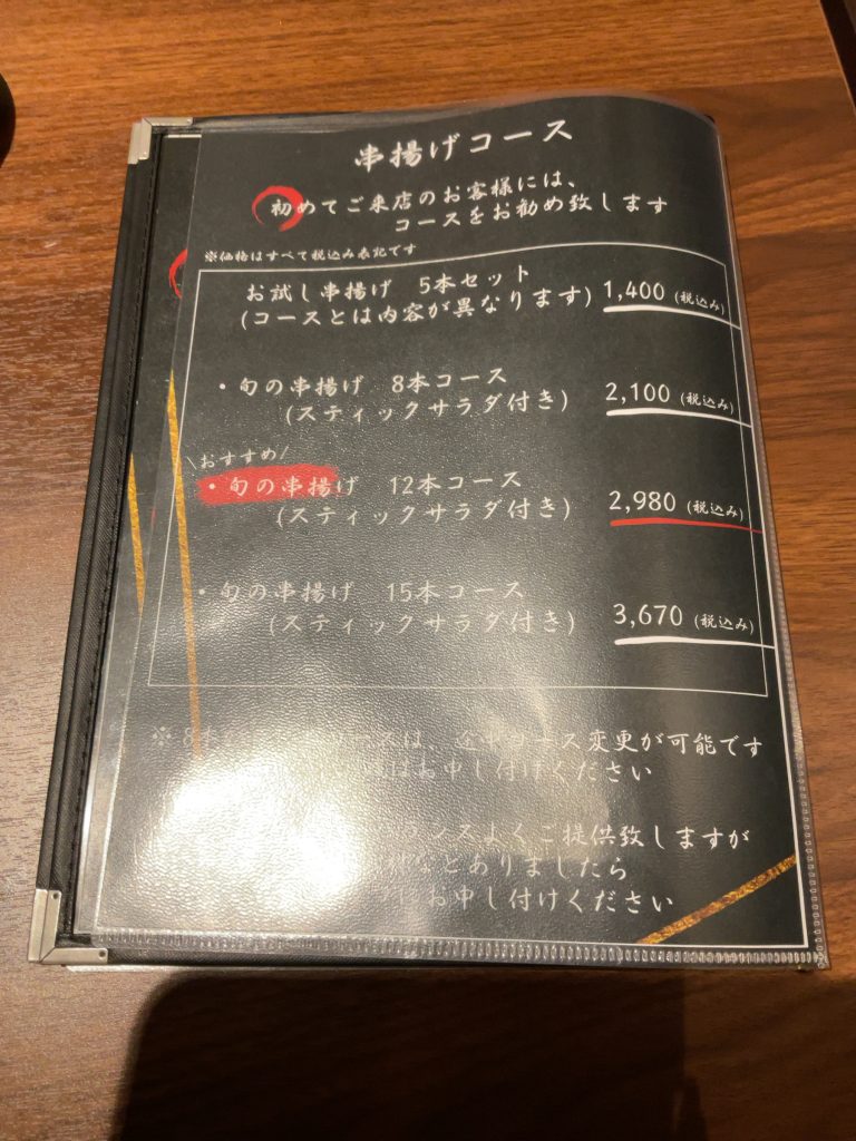 今回は旬の串揚げ12本で2,980円のコースを選択