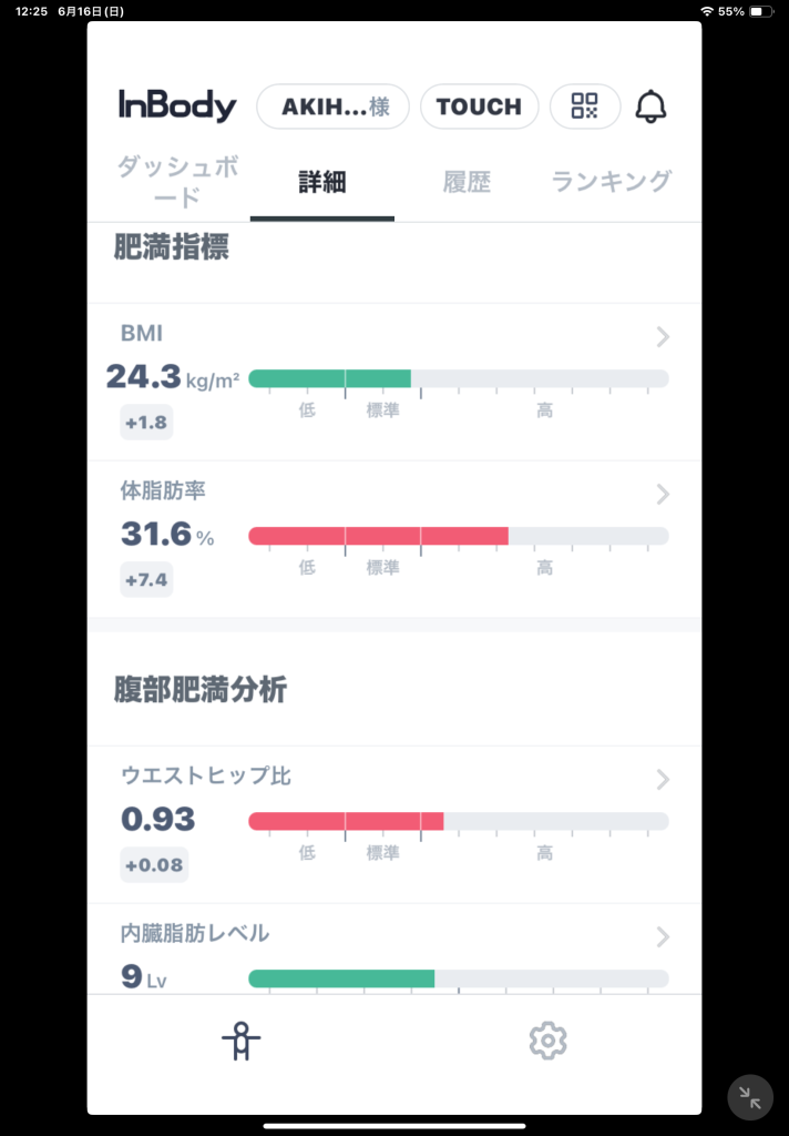 お次はBMIや体脂肪率。体脂肪率は驚異の31.6%!!!!