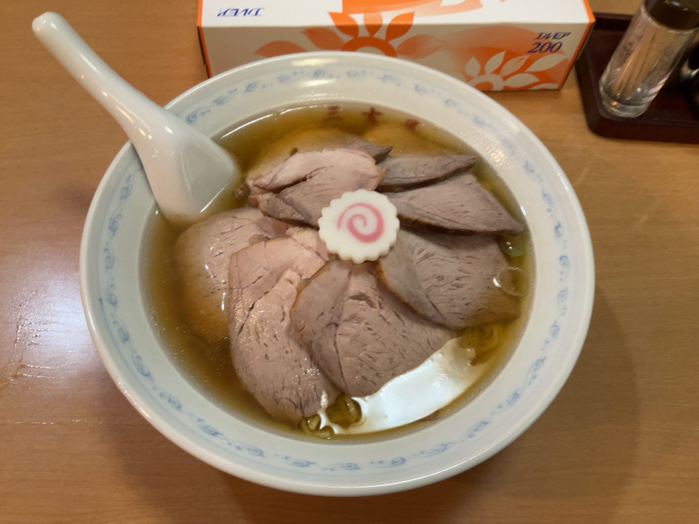チャーシュー麺大盛りをチョイス。昔ながらのあっさり醤油ラーメン。