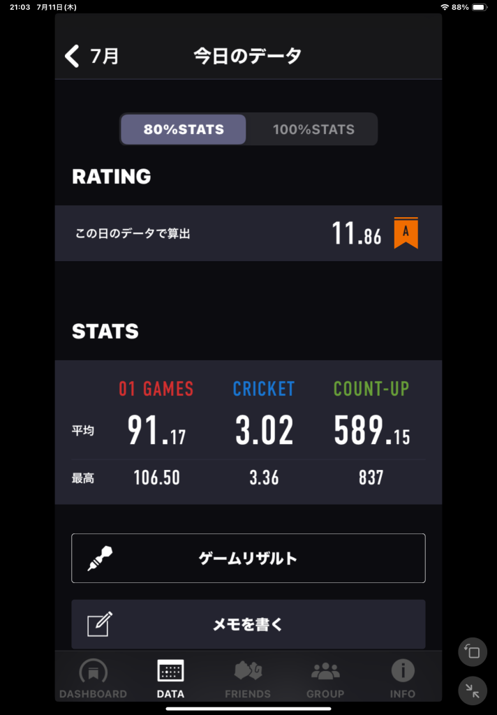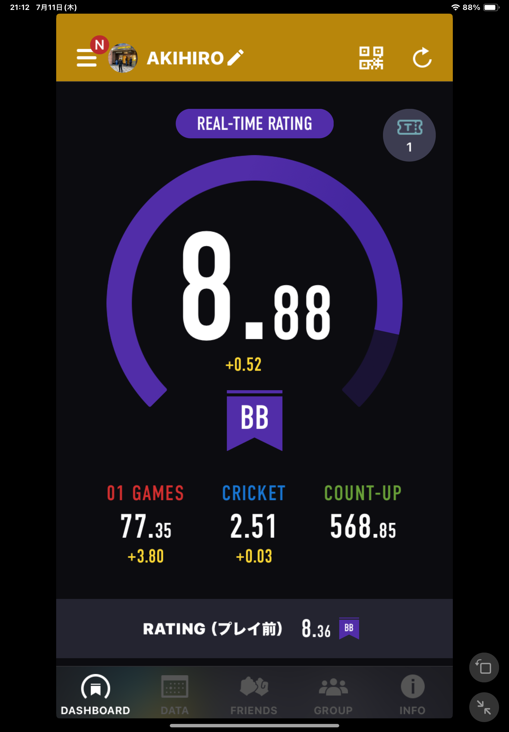 この日は01を6戦、クリケを2戦やってRt.11.86というケガ前とほぼ変わらない出来栄え。いやー今日のデータでもAフラが出せるようになるまで長かったね。